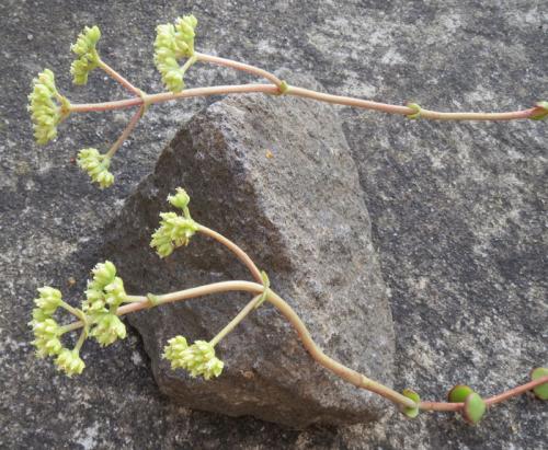 Inflorescences erect elongated thyrses with several glomerate dichasia at the 3 - 5 nodes of the peduncle, peduncle to 20 cm.