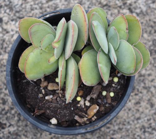 Crassula cotyledonis 'Dubia': Leaves 4.5 cm long, 4.1 cm wide and 1.2 cm thick = thicker and chunkier than the standard clone, also more compact :
