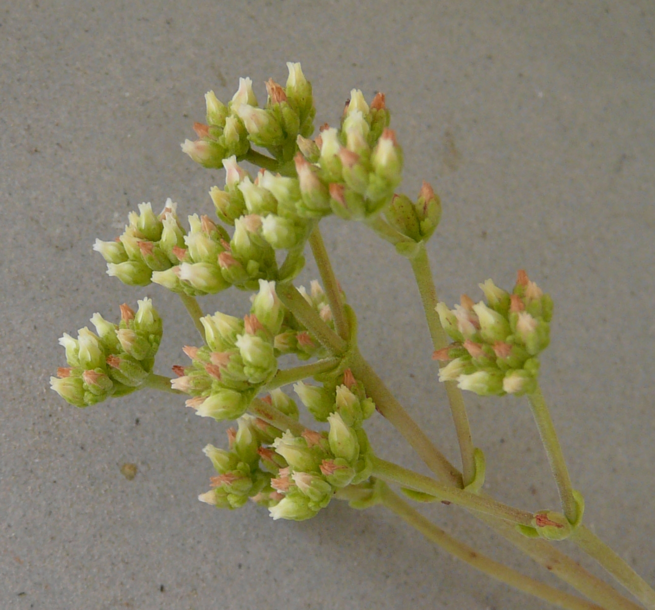 Inflorescences erect elongated thyrses with several glomerate dichasia at the 3 - 5 nodes of the peduncle, peduncle to 20 cm.