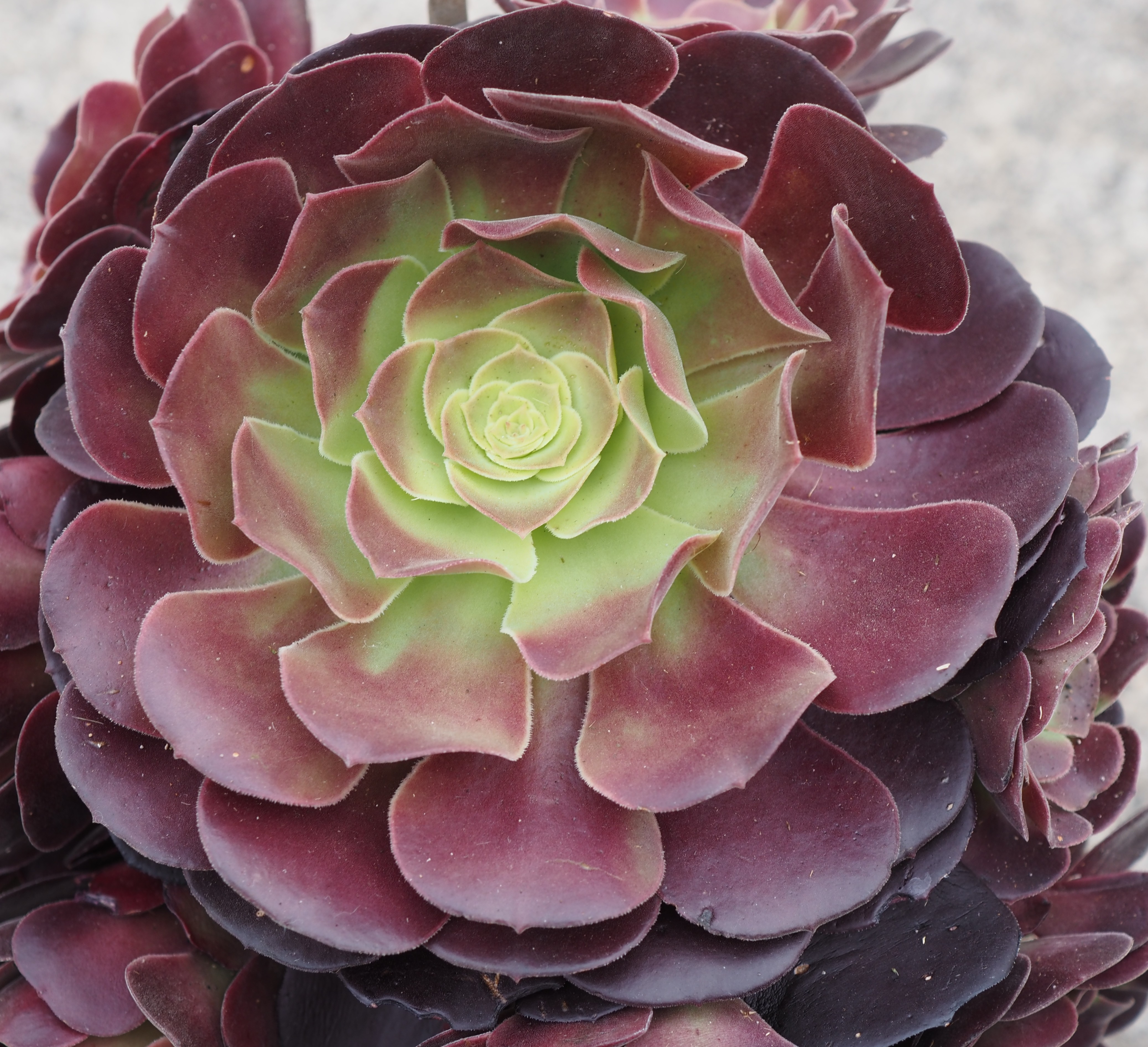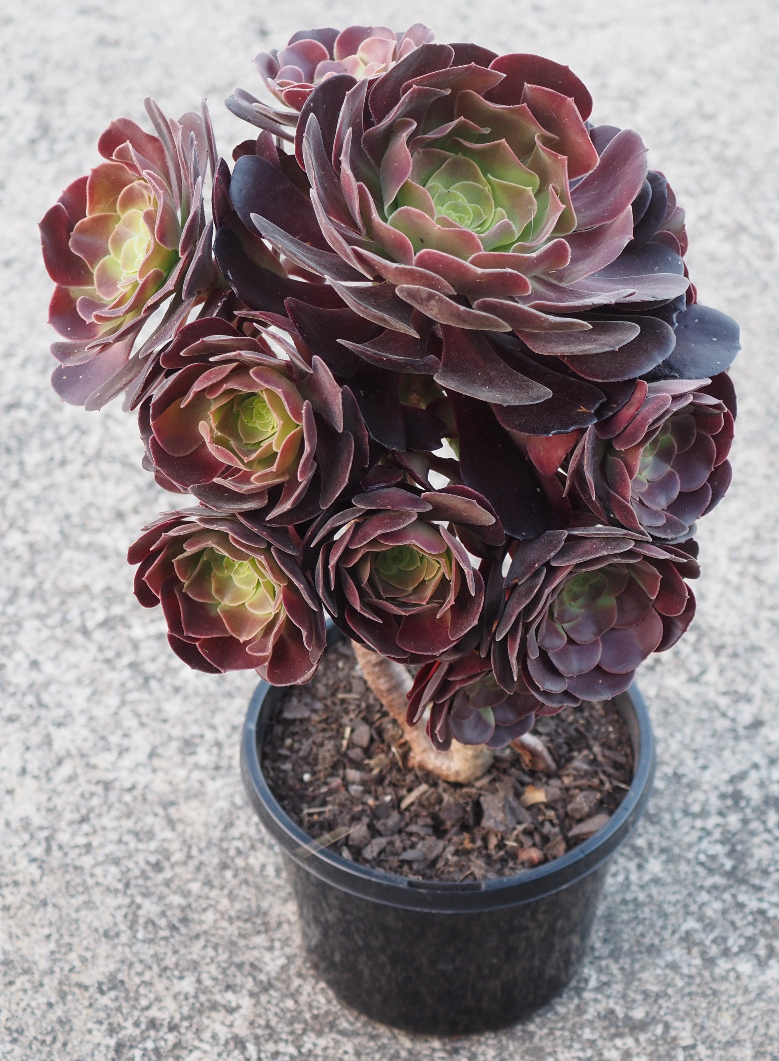 Parentage : Aeonium canariense x A. arboreum 'Zwartkop'