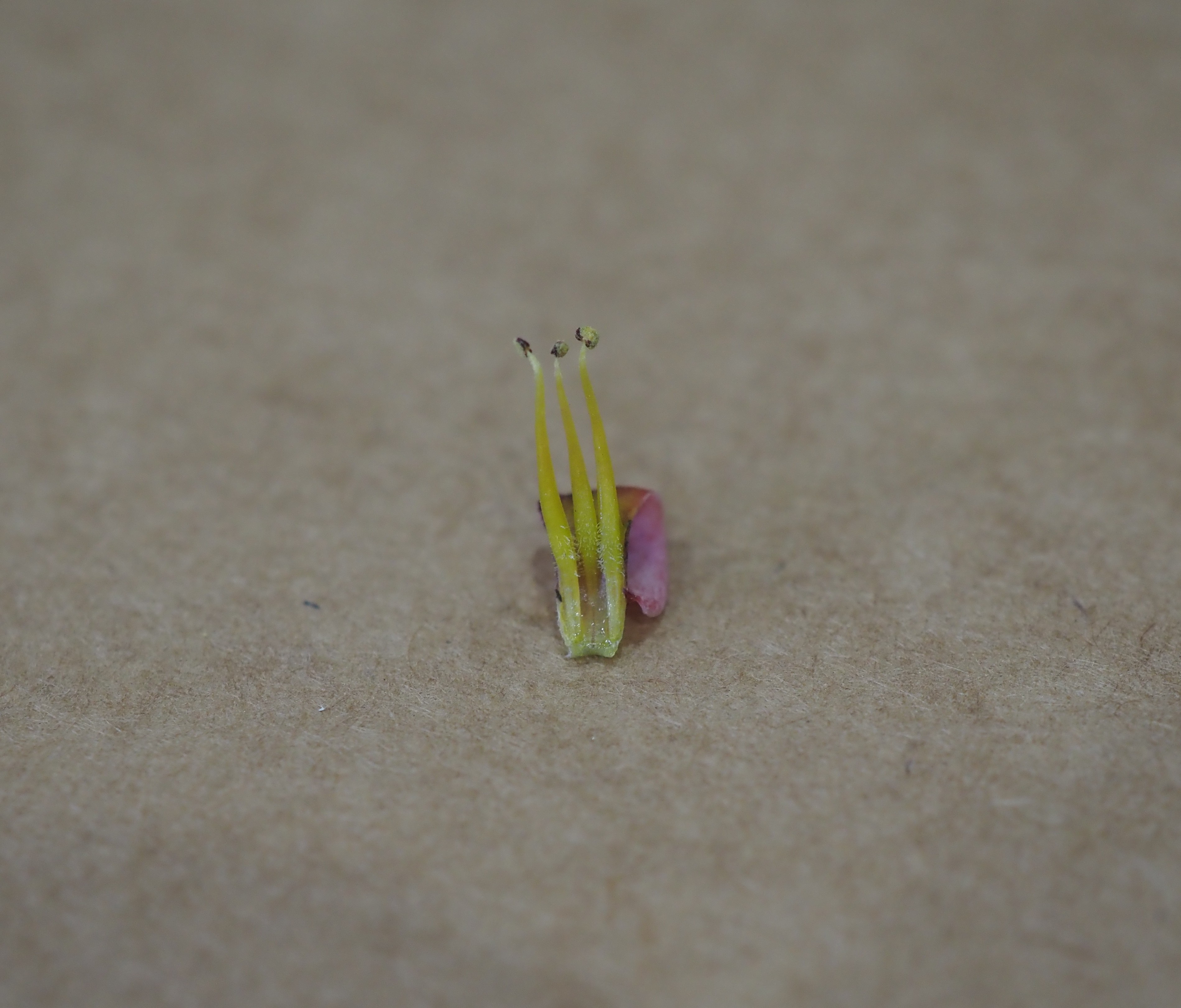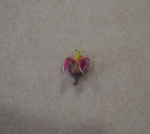 Flowers : Sepals 3 – 4 mm, corolla 15 mm, tube 5 -8 mm long, yellowish to orange-red, petals 11 – 12 mm, reflexed, filaments hairy at base.