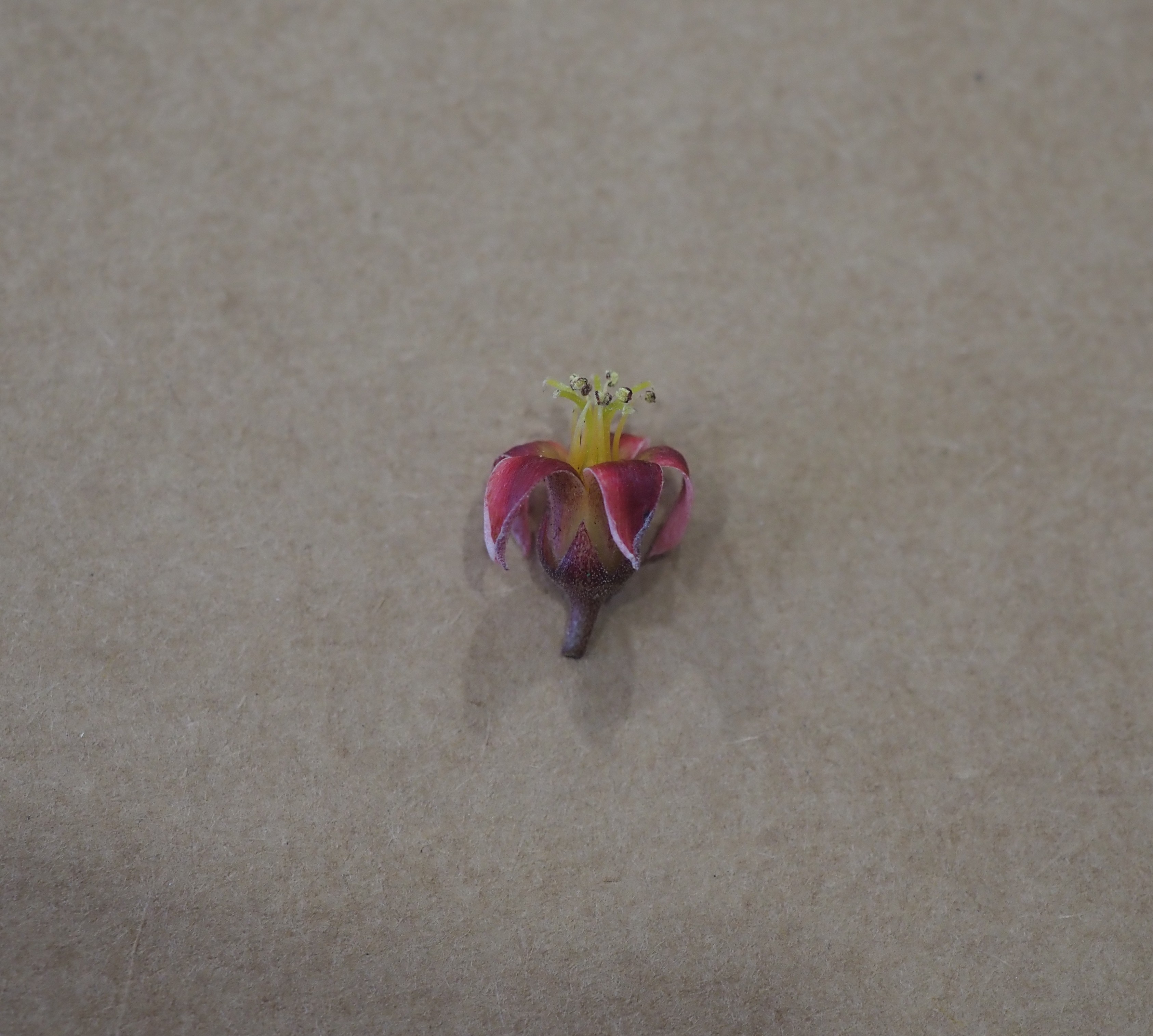 Fleurs : Sépales 3 – 4 mm, corolle 15 mm, le tube mesurant 5 -8 mm de long, jaunâtre à orange-rouge, petales 11 – 12 mm, recourbés, filaments poilus à la base.